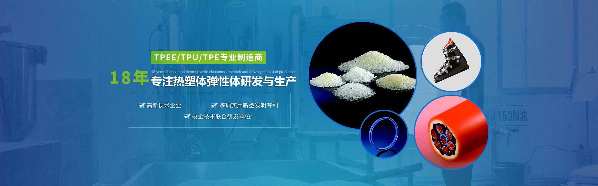 公司一直致力專業研發生產及銷售以TPU、TPE、TPV、TPEE為主體的熱塑性彈性體材料,以科技為第一生產力,堅持創新發展。產品領域涉及汽車、工程設備、通訊電子、家電、運動休閑、玩具、密封產品等行業,為客戶提供熱塑性彈性體產品及技術服務全方位的解決方案。